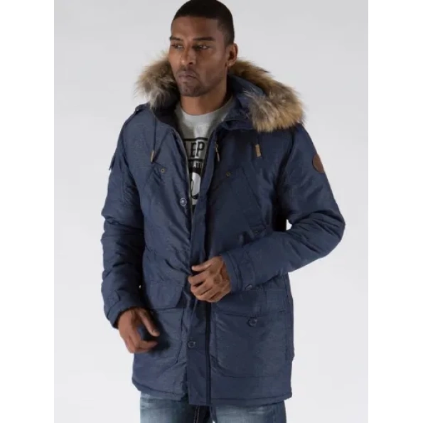 Bold Fur Hooded Blue Long Coat