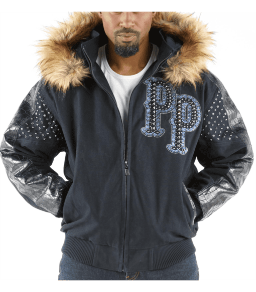 Black Blue Fur Hood Jacket | Airbourne Jacket