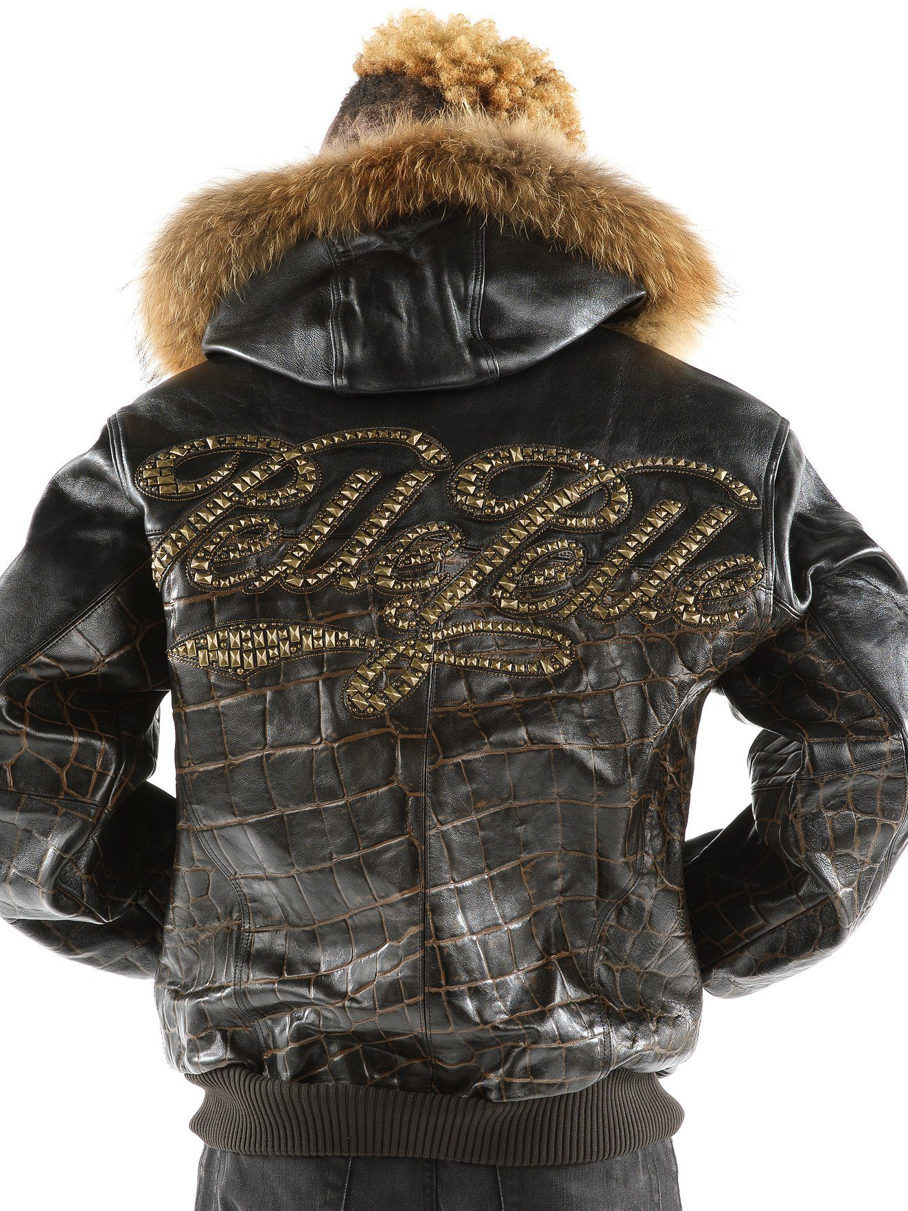 Black Men Croc Leather Jacket | Fur Hood Jacket