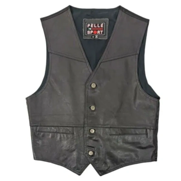 Black Sport Leather Vest | Motorcycle Vest