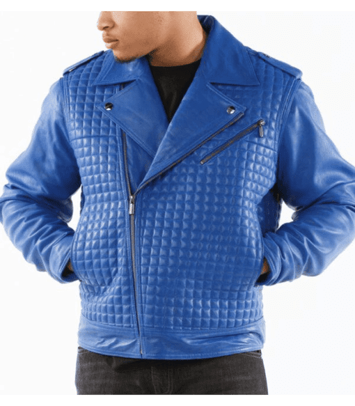 Blue Houndstooth Quilted Jacket | Leather Jacket
