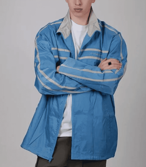 Blue Men Polyester Long Coat