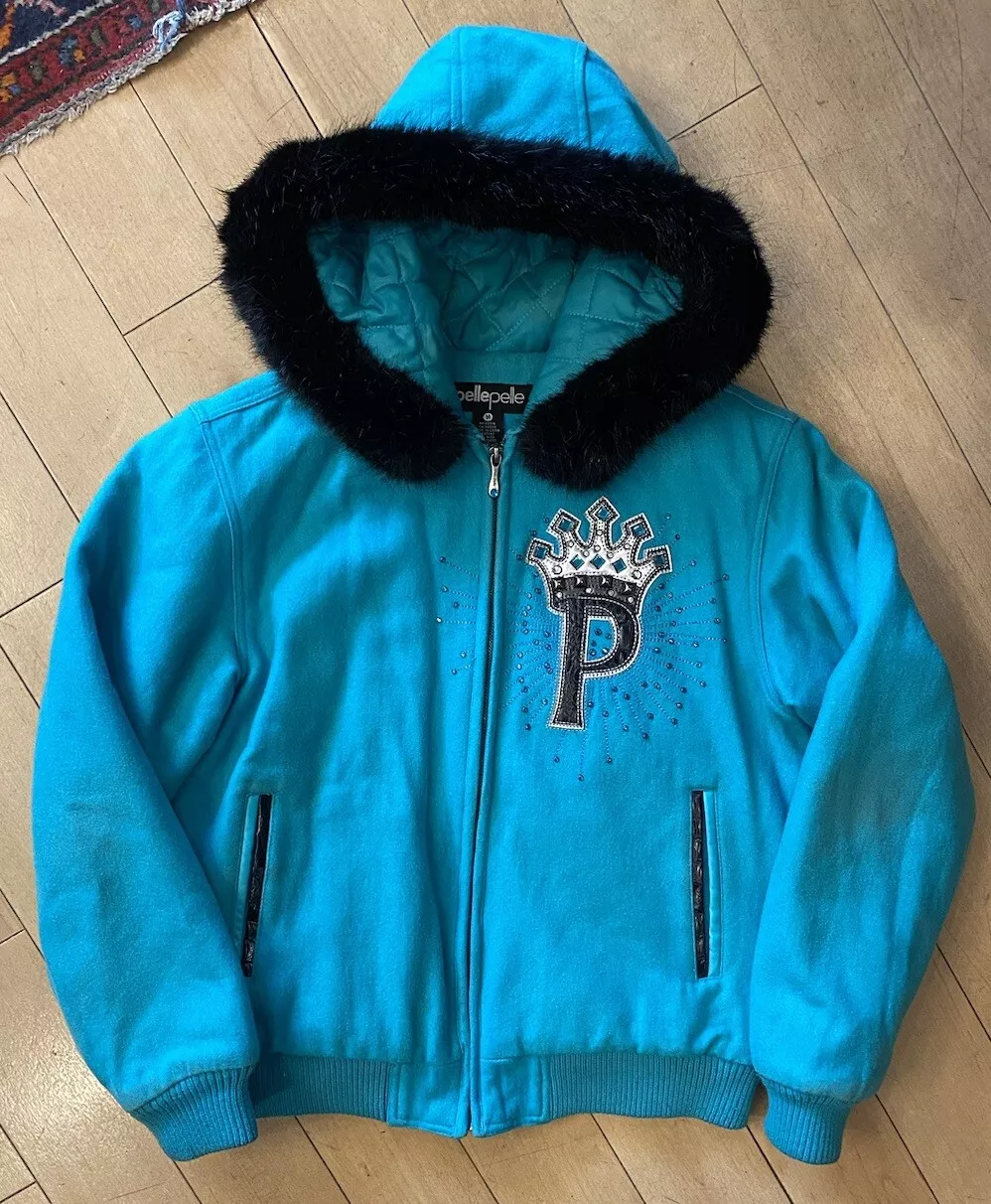 Blue Princess Fur Hood Wool Jacket | MB Jacket