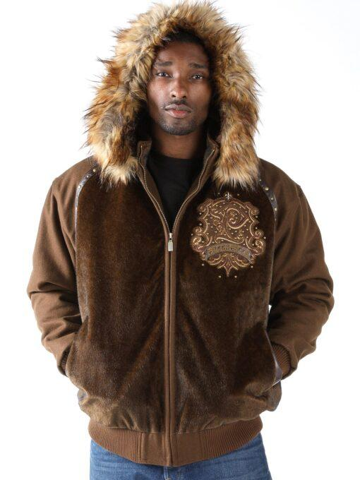 Brown Crest Fur Hood Jacket | Wool Jacket