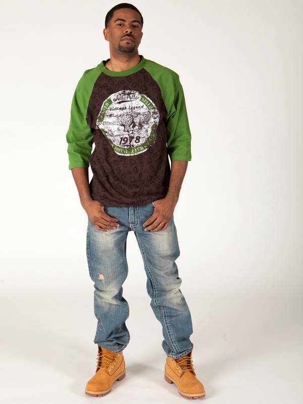 Bold Brown T Shirt with Green Sleeves
