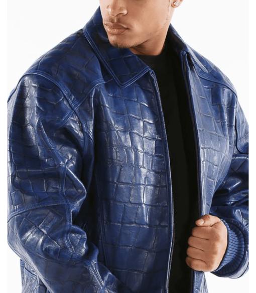 Dark Blue Croc Leather Jacket | Men Jacket