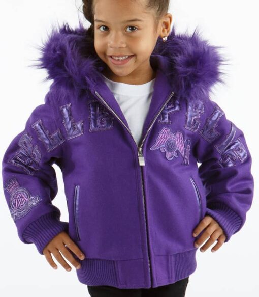 Kids Purple MB Wool Jacket | Fur Hood Jacket