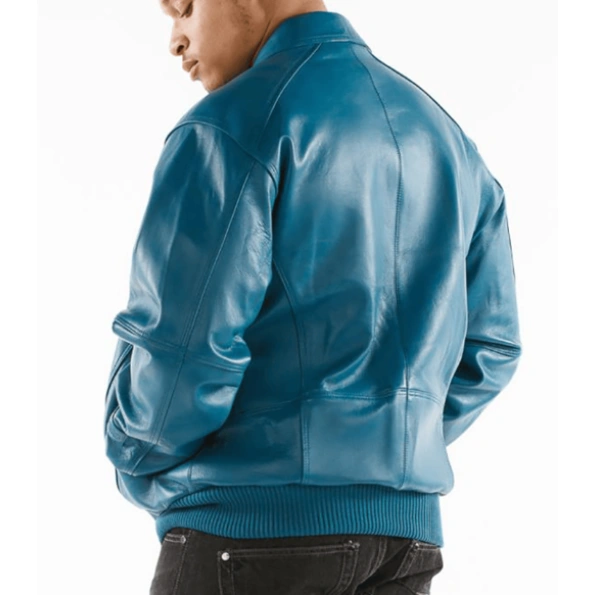 Men Aqua Blue Leather Jacket | Bomber Jacket