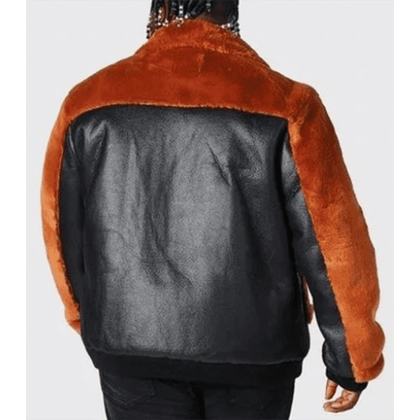 Men Aviator Leather Jacket | Black & Orange