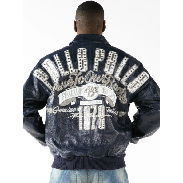 Men Dark Blue MB Leather Jacket