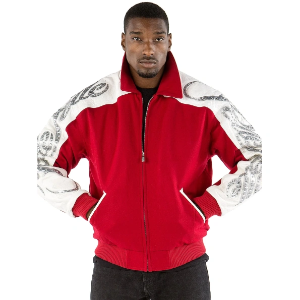Men Scripted Red Wool Jacket | Zipper Jacket