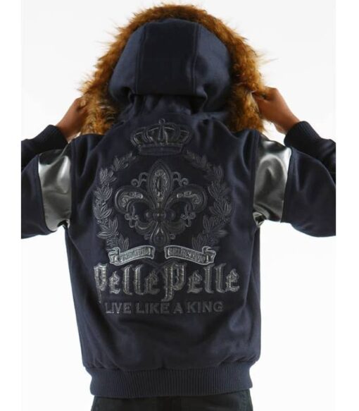 Navy Blue Wool Fur Hood Jacket | Kids Jacket