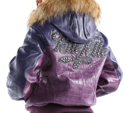 Purple Hooded Script Leather Jacket