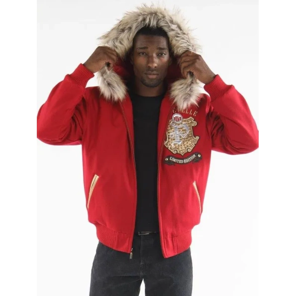 Red Legend Series Wool Jacket | Fur Hood Jacket