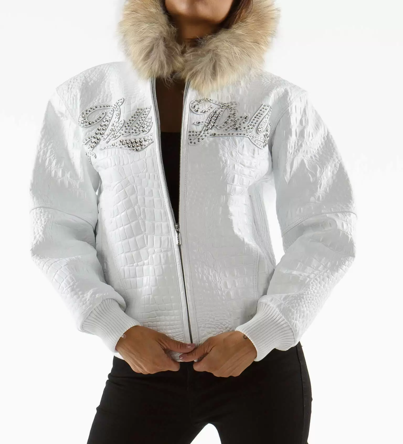 White Leather Fur Hood Jacket